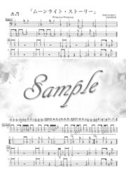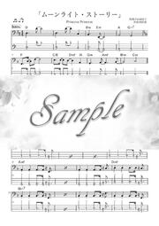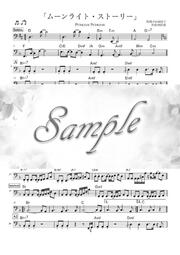 PRINCESS PRINCESSの楽曲「ムーンライトストーリー(Moonlight Story)」のベース譜(五線譜のみ・コード付き)です。