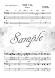 中西保志の楽曲「最後の雨」のベース譜(五線譜&TAB譜の2段譜・コード付き)です。