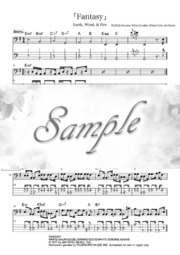 Earth, Wind & Fireの楽曲「Fantasy(宇宙のファンタジー)」のベース譜(五線譜&TAB譜の2段譜・コード付き)です。