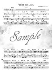 TOTOの楽曲「Hold the Line」のベース譜(五線譜&TAB譜の2段譜・コード付き)です。