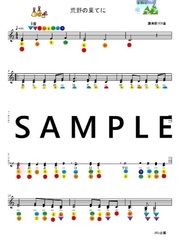 幼稚園や高齢者施設等で簡単に演奏できるように色音符を付けました。