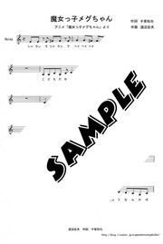 テレビアニメ「魔女っ子メグちゃん」主題歌の歌詞付メロディー楽譜スコアです。