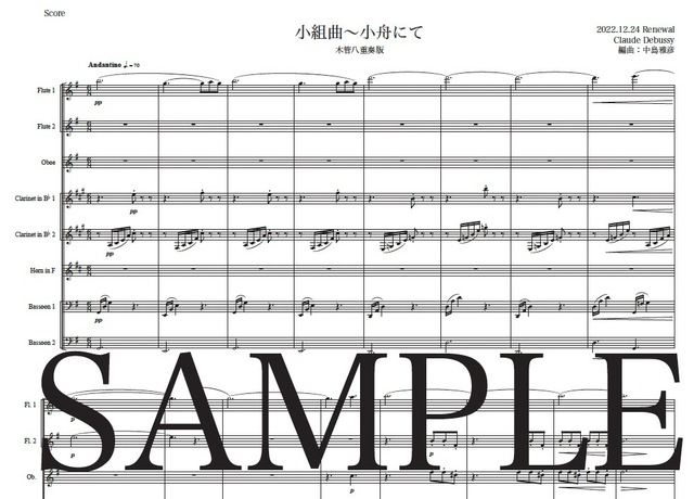 ドビュッシー「小組曲~小舟にて」木管八重奏版 コンビニプリント対応