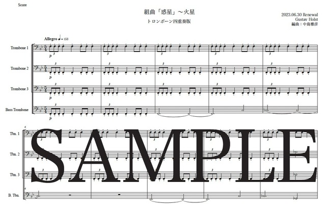 ホルスト「惑星~火星」Newトロンボーン四重奏版 コンビニプリント対応
