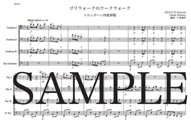 ドビュッシー「ゴリウォーグのケークウォーク」トロンボーン四重奏版 コンビニプリント対応