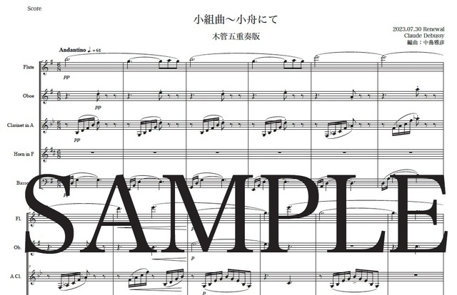 ドビュッシー「小組曲~小舟にて」New木管五重奏版 コンビニプリント対応