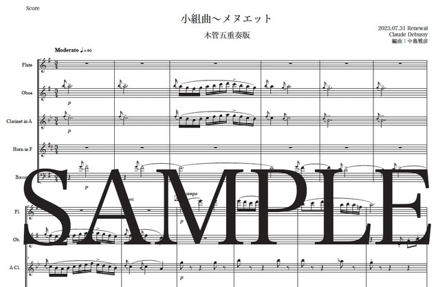 ドビュッシー「小組曲~メヌエット」New木管五重奏版 コンビニプリント対応