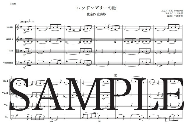 「ロンドンデリーの歌」New弦楽四重奏版 コンビニプリント対応