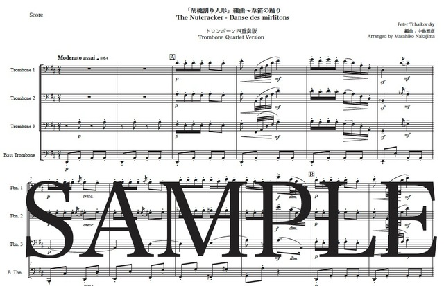 チャイコフスキー「くるみ割り人形~葦笛の踊り」Newトロンボーン四重奏版 コンビニプリント対応