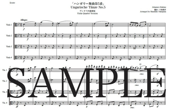 ブラームス「ハンガリー舞曲第5番」Newヴィオラ四重奏版 コンビニプリント対応