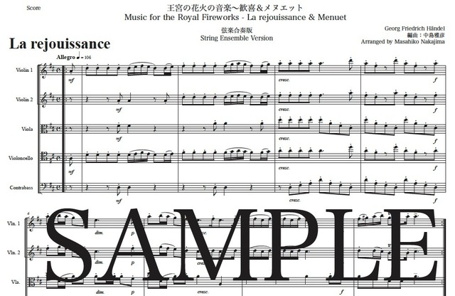ヘンデル「王宮の花火の音楽~歓喜&メヌエット」弦楽合奏版 コンビニプリント対応