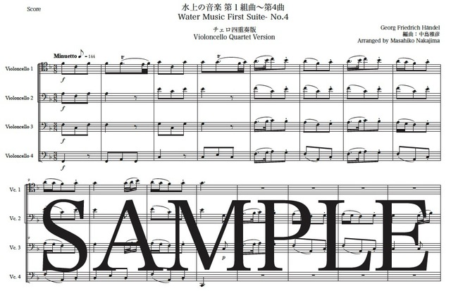 ヘンデル「水上の音楽 第1組曲~第4曲」チェロ四重奏版 コンビニプリント対応