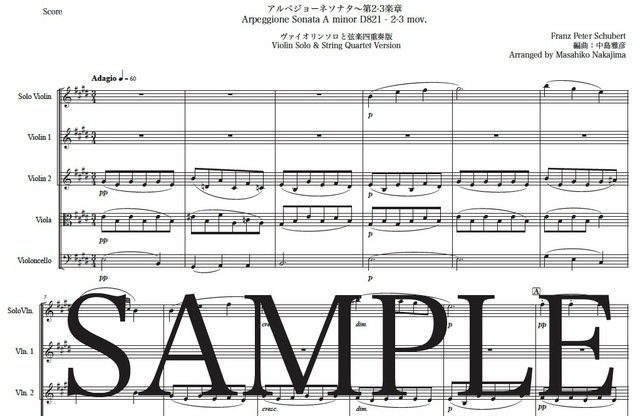 シューベルト「アルペジョーネソナタ~第2-3楽章」ヴァイオリンと弦楽四重奏版 コンビニプリント対応