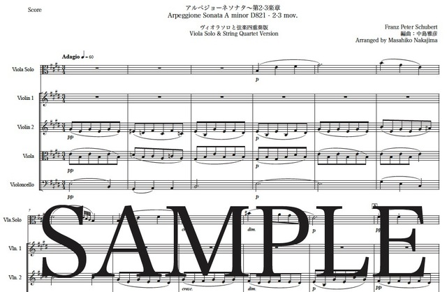 シューベルト「アルペジョーネソナタ~第2-3楽章」ヴィオラと弦楽四重奏版 コンビニプリント対応