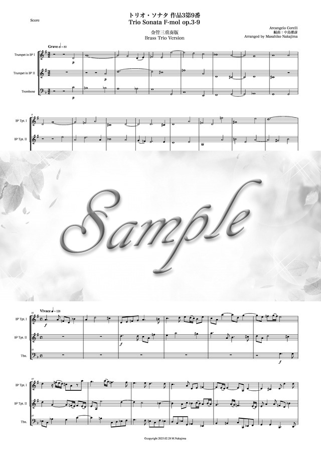 コレッリ「トリオ・ソナタ 作品3第9番」金管三重奏版 コンビニプリント対応