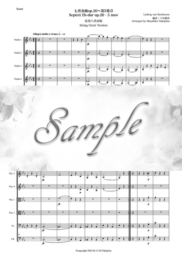 ベートーヴェン「七重奏曲op.20~第5楽章」弦楽八重奏版 コンビニプリント対応
