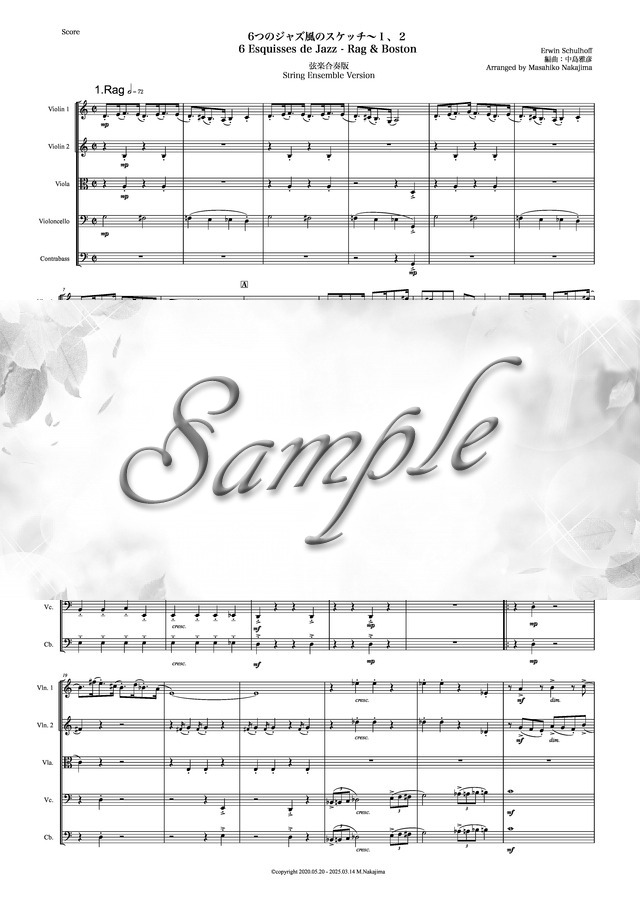 シュルホフ「6つのジャズ風のスケッチ~1、2」弦楽合奏版 コンビニプリント対応