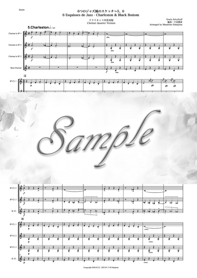 シュルホフ「6つのジャズ風のスケッチ~5、6」Newクラリネット四重奏版 コンビニプリント対応