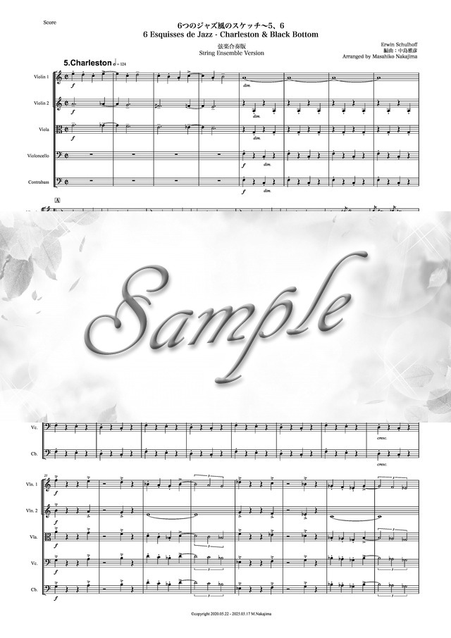 シュルホフ「6つのジャズ風のスケッチ~5、6」弦楽合奏版 コンビニプリント対応