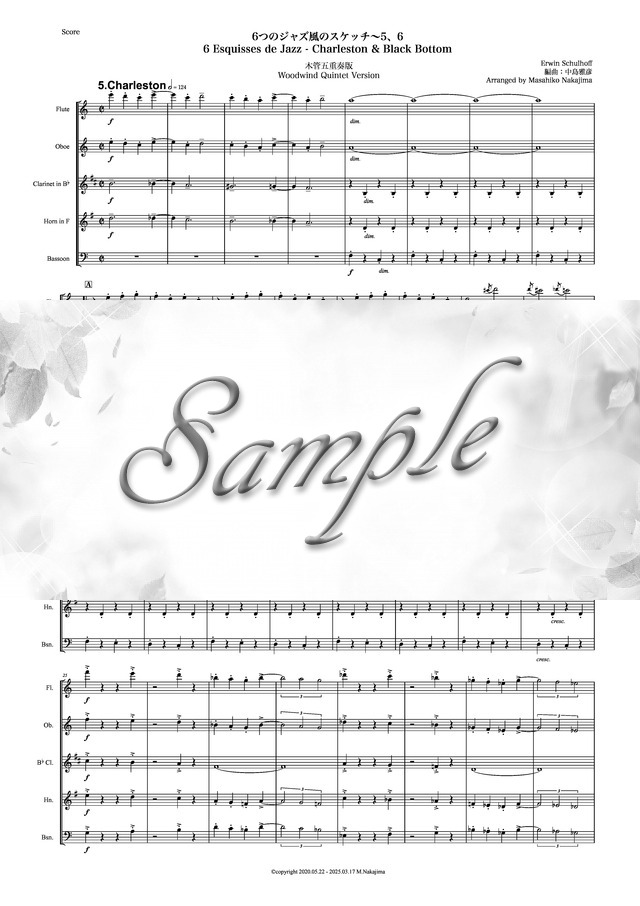 シュルホフ「6つのジャズ風のスケッチ~5、6」木管五重奏版 コンビニプリント対応