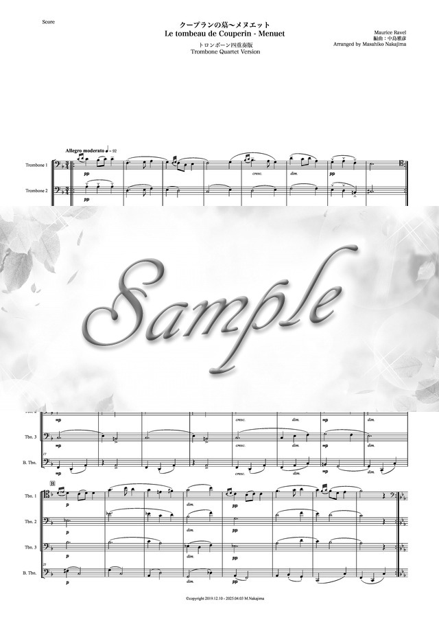 ラヴェル「クープランの墓~メヌエット」Newトロンボーン四重奏版 コンビニプリント対応