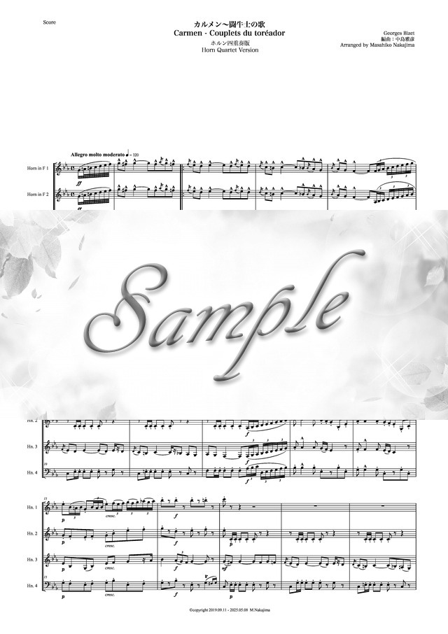 ビゼー「カルメン~闘牛士の歌」ホルン四重奏版 コンビニプリント対応