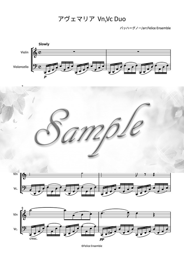 バッハ=グノー『アヴェ・マリア』ヴァイオリン、チェロニ重奏 スコア譜 コンビニプリント対応