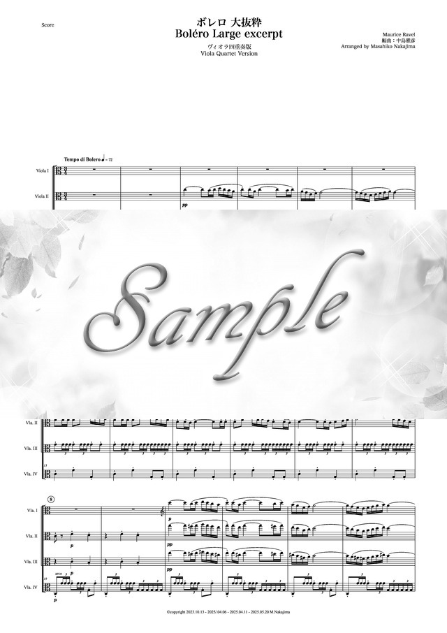 ラヴェル「ボレロ大抜粋」ヴィオラ四重奏版 コンビニプリント対応