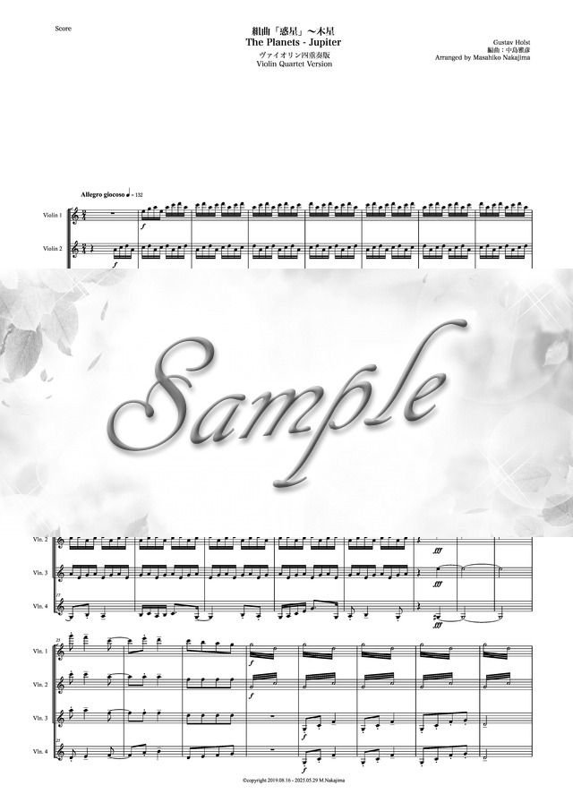 ホルスト「惑星~木星」Newヴァイオリン四重奏版 コンビニプリント対応