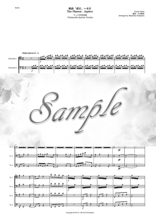 ホルスト「惑星~木星」Newチェロ四重奏版 コンビニプリント対応