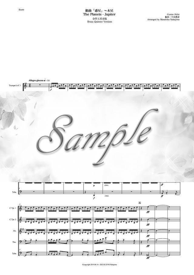 ホルスト「惑星~木星」New金管五重奏版 コンビニプリント対応