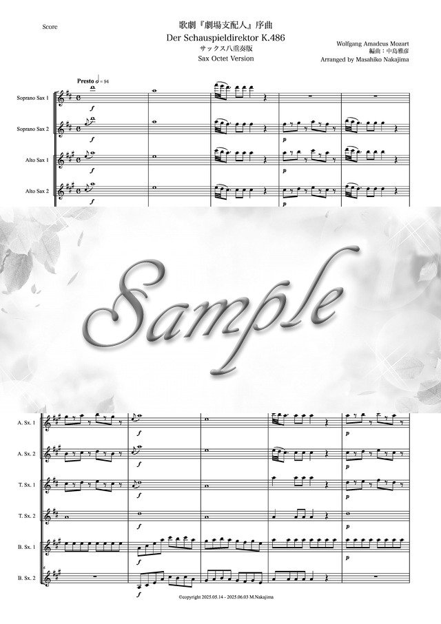 モーツァルト「歌劇『劇場支配人』序曲」サックス八重奏版 コンビニプリント対応