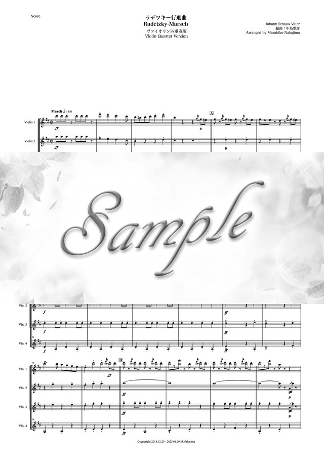 「ラデツキー行進曲」Newヴァイオリン四重奏版 コンビニプリント対応