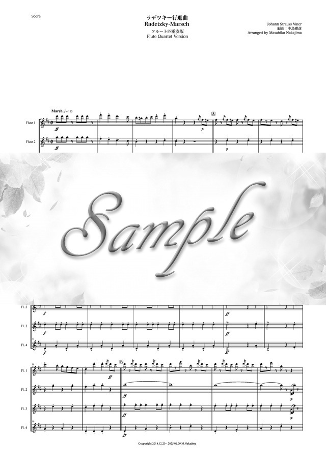 「ラデツキー行進曲」Newフルート四重奏版 コンビニプリント対応
