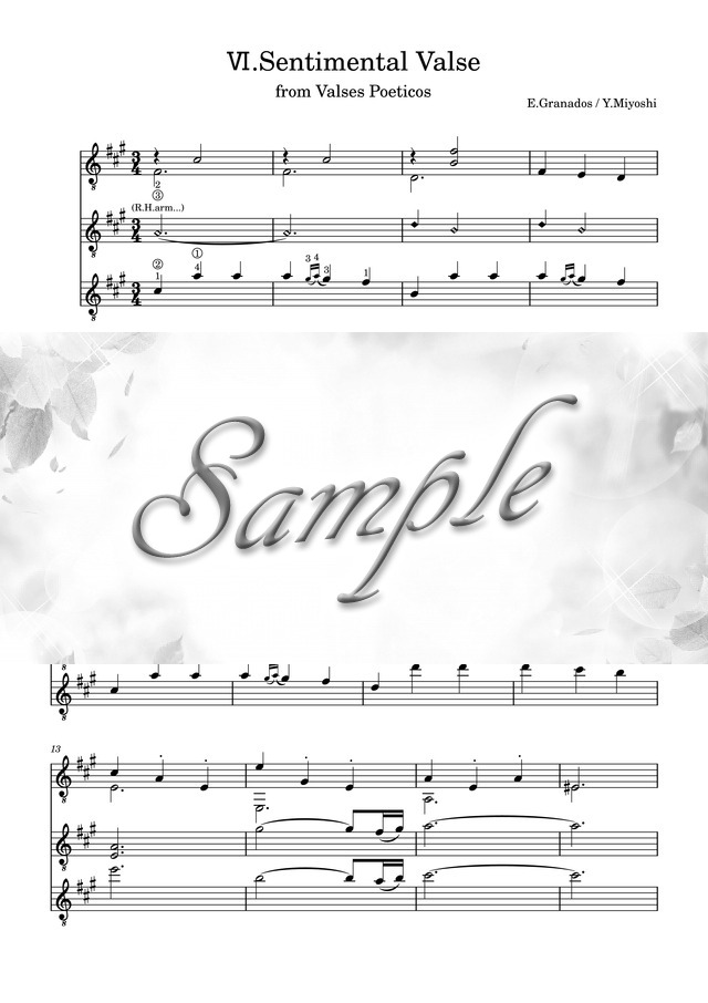 【ギター合奏】詩的ワルツ集より第6曲[感傷的なワルツ]/Valses Poeticos[Lento Sentimental] コンビニプリント対応