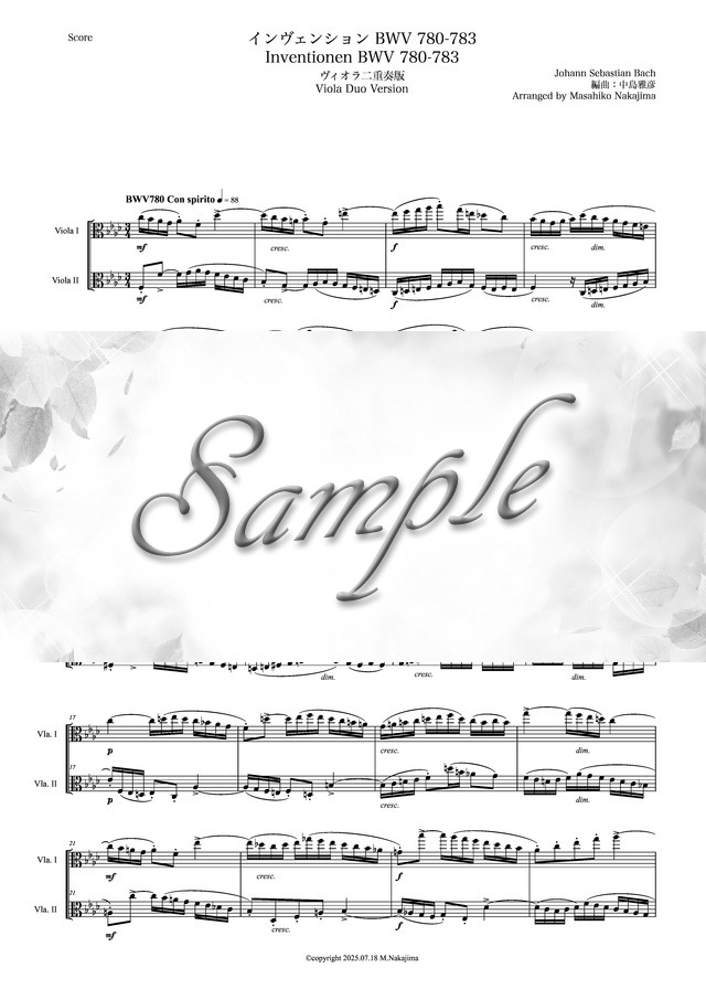 バッハ「インヴェンションBWV780-783」ヴィオラ二重奏版 コンビニプリント対応
