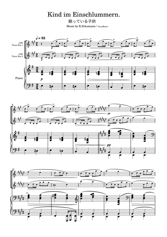 子供の情景より「眠っている子供」ピアノトリオ / テナーサックスデュオ コンビニプリント対応