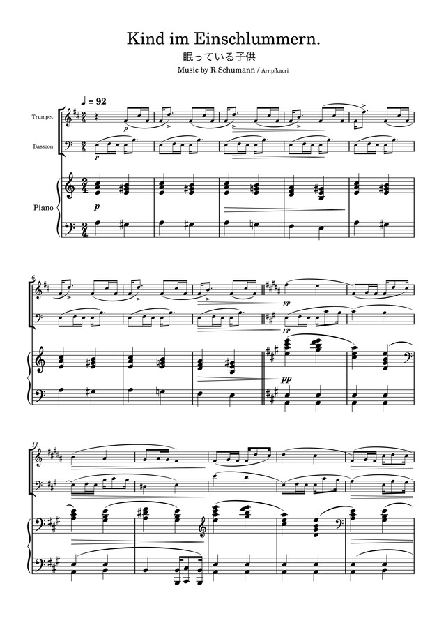 子供の情景より「眠っている子供」ピアノトリオ / トランペット&ファゴット コンビニプリント対応