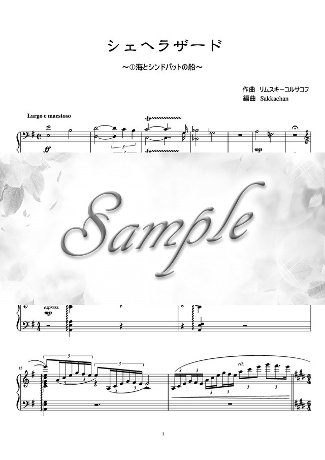 シェヘラザード (第1楽章)【ピアノソロ譜】 コンビニプリント対応