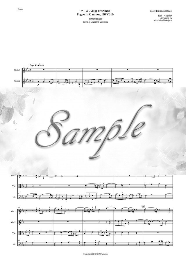 ヘンデル「フーガ ハ短調 HWV610」弦楽四重奏版 コンビニプリント対応