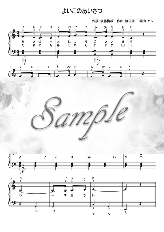 よいこのあいさつ 弾き歌い楽譜(指番号付き)ドレミ付き ハ長調 コンビニプリント対応