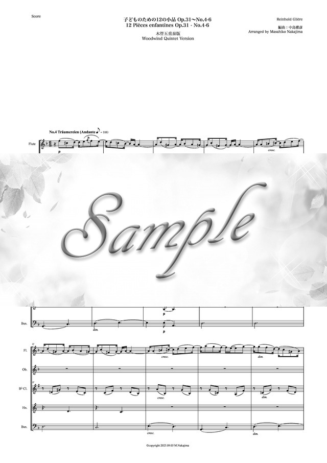 グリエール「子どものための12の小品~No.4-6」木管五重奏版 コンビニプリント対応