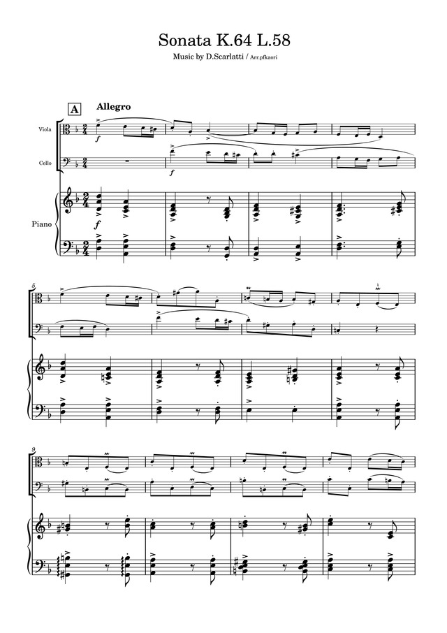 「ソナタK.64」ヴィオラ&チェロ / ピアノトリオ コンビニプリント対応