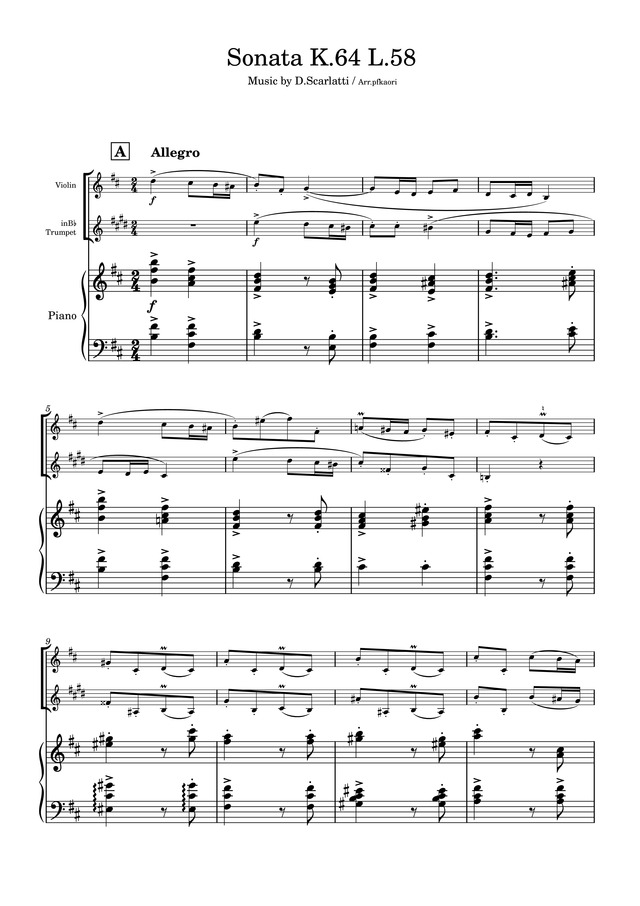 「ソナタK.64」ヴァイオリン&トランペット / ピアノトリオ コンビニプリント対応
