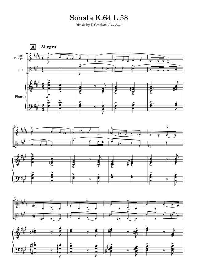 「ソナタK.64」ヴィオラ&トランペット / ピアノトリオ コンビニプリント対応