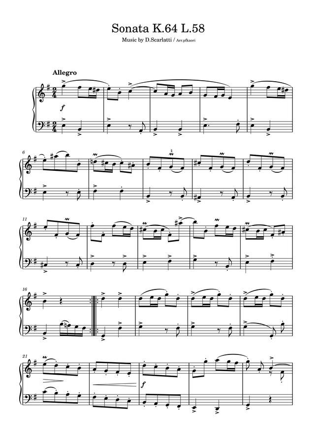 「ソナタK.64」 (Em)ピアノソロ初級 コンビニプリント対応