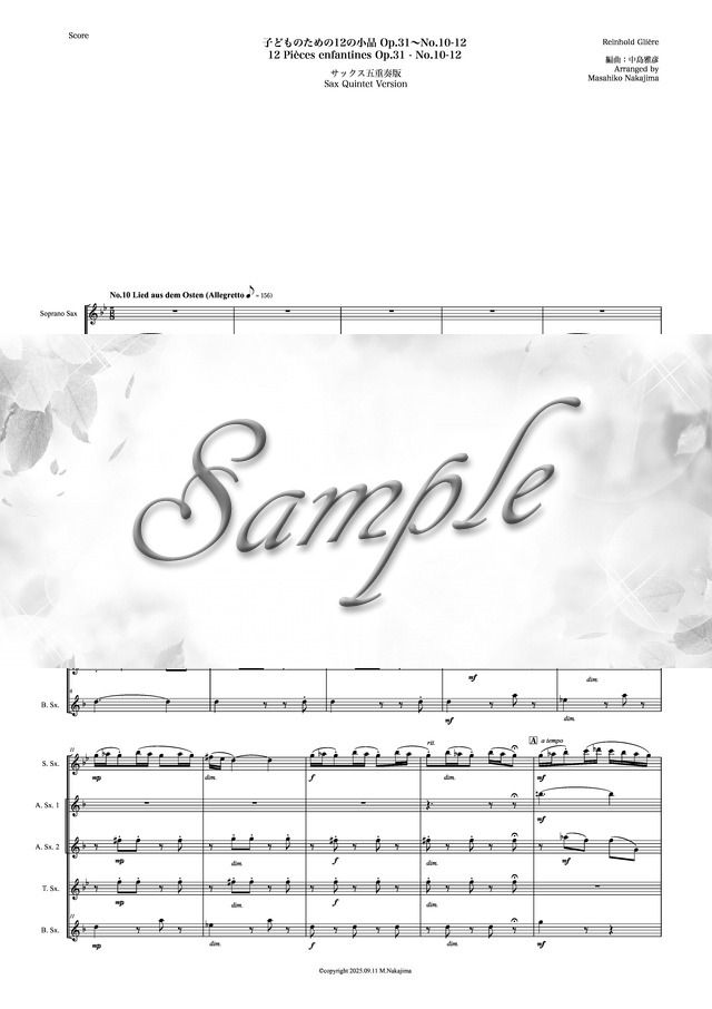 グリエール「子どものための12の小品~No.10-12」サックス五重奏版 コンビニプリント対応