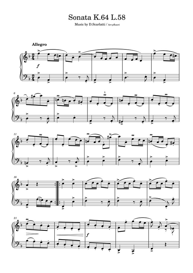 「ソナタK.64」 (Dm)ピアノソロ初級 (OriginalKey) コンビニプリント対応