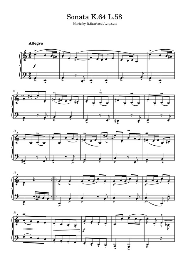 「ソナタK.64」 (Am)ピアノソロ初級 コンビニプリント対応