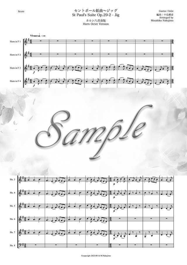 ホルスト「セントポール組曲~ジッグ」ホルン八重奏版 コンビニプリント対応